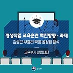 전 국민의 직무역량 개발을 위한 국가 책임이 필요합니다. 김상곤 부총리 겸 교육부장관은 7월 18일(수) 14:00 국회 의원회관 제2세미나실에서 ‘평생직업교육훈련 혁신방향 및 과제(마스터플랜)’ 공청회에 참석했습니다. 이번 공청회는 교육부가 미래사회 변화에 대응하여 직업교육훈련의 비전과 방향에 대해 국민 의견을 폭넓게 듣고자 세 번째로 개최되는 공청회로, 공동 주최한 더불어민주당 유은혜 의원, 한정애 의원, 조승래 의원, 이용득 의원과 더불어민주당 김태년 정책위의장이 참석하였으며, 직업계고 교원, 전문대학 관계자, 기업 관계자, 일반 국민 등 약 100여명이 참여했습니다. 공청회는 교육부가 올해 1월부터 민관합동추진단을 통해 마련한 ‘평생직업교육훈련 혁신방향 및 과제’에 대해 교육부 최보영 과장의 발제..