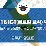 “2018 IGT(글로벌 교사) 대회”를 개최합니다. 교육부(부총리 겸 교육부장관 김상곤)는 예비교원의 글로벌 역량 제고를 위해 한국연구재단(이사장 노정혜)과 공동으로 2018 글로벌 교사(이하 IGT : I am a Global Teacher) 대회를 개최합니다. IGT 대회는 ‘글로벌 모의수업 시연대회’와 ‘다문화교육 프로젝트 발표대회’ 두 부문으로 나누어 진행되며, 교사를 꿈꾸는 국내 교·사대 재학생이라면 누구나 참가할 수 있습니다. 2014년부터 시행한 IGT대회는 글로벌 교원양성 거점대학 소속 대학 학생을 대상으로 진행하였으나, 참여를 원하는 타 대학 소속 학생들의 요청에 부응하여 올해부터는 전국 규모로 확대하여 개최하게 되었습니다. IGT 대회의 두 가지 프로그램 중 ‘글로벌 모의수업 시연대회..