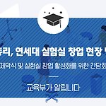 현판 제막식 및 실험실 창업 활성화를 위한 간담회를 열었습니다. 김상곤 부총리 겸 교육부장관과 이진규 과학기술정보통신부(이하, 과기정통부) 차관은 8월 8일(수) 오후 2시 30분, 서울 서대문구 연세대학교(총장 김용학)를 찾아 미래의 성장동력이 될 실험실 창업 공간을 방문하고 실험실 창업가들과 교류하는 시간을 가졌습니다. 이번 현장방문 및 간담회는 교육부와 과기정통부가 공동으로 추진하는 ‘실험실 특화형 창업선도대학’의 창업·연구 현장을 살펴보고, 학생·교원 창업가 등 현장의 목소리를 청취하여 실험실 창업 활성화 방향을 모색하기 위해 개최되었습니다. ‘실험실 창업’이란 정부의 연구개발(R&D) 지원을 통해 대학이 논문 또는 특허 형태로 보유한 혁신기술을 바탕으로 새로운 시장을 창출하는 “기술집약형 창업”..
