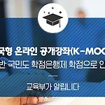 K-MOOC의 이수학점을 일반 국민도 받을 수 있게 되었습니다 교육부(부총리 겸 교육부장관 유은혜)는 11월 6일(화) 국무회의에서 한국형 온라인 공개강좌(이하 K-MOOC*) 학점 인정 확대를 위해 「학점인정 등에 관한 법률 시행령」 및 「평가인정 학습과정 운영에 관한 규정」일부 개정안을 심의․의결했다고 밝혔습니다. * K-MOOC(Korean Massive Open Online Course) : 고등․직업교육 분야의 우수한 강좌를 온라인으로 무료 수강할 수 있는 서비스 그동안 K-MOOC 강좌를 이수한 경우 각 대학이 학칙으로 정하는 경우 대학의 학점으로만 인정 가능하였습니다. 이번 개정안은 대학생이 아닌 일반 국민도 학점은행제* 학점으로 인정받을 수 있도록 개선한 것으로 보다 많은 국민들에게 학점 ..