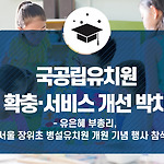 유치원 시설 참관 및 현장의 목소리 경청국공립 유치원 확충 및 서비스 개선에 지속 노력 유은혜 부총리 겸 교육부 장관은 3월 13일(수), 서울 장위초 병설유치원 개원 기념행사에 참석하여, 유치원 시설을 참관하고 간담회를 통해 현장의 목소리를 경청하였습니다. ■ 국공립유치원 학급이 늘어납니다. ▶ ‘국공립유치원 확충 및 서비스 개선 계획’에 따라 적극 확충① 국공립유치원 확충은 당초 3월 692학급 확충 계획에서② 실제 개원한 학급은 102% 확충된 703개로 확인되었습니다. ■ 국공립유치원 서비스가 개선됩니다. ▶ 방과후과정 보장으로 맞벌이 가정 지원① 현재 국공립유치원에 다니는 유아의 81.3%(144,799명)가 방과후과정에 참여하고 있으며,② ’18년 대비 6,854명이 증가하였습니다.③ 대부분 ..