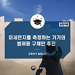 2019년 3월 20일 수요일 서울신문에서 보도된 '기준도 없이 … 27만 교실에 미세먼지 측정기 설치' 내용에 관련하여 알려드립니다. 동 보도내용에 대한 설명 교육부는 고농도 미세먼지 발생 시 학교에서의 대응을 강화하기 위하여 유치원 및 초‧중등학교의 장은 교육부령으로 정하는 바에 따라 각 교실에 공기를 정화하는 설비와 미세먼지를 측정하는 기기를 설치하도록하고, 국가나 지방자치단체는 경비의 전부 또는 일부를 보조하도록 하는 내용을 포함한 학교보건법 일부개정법률안이 국회 본회의에 통과('19.3.13.)된 바 있습니다. 이와 관련, 교육부는 공기를 정화하는 설비와 미세먼지를 측정하는 기기의범위와 유형 등 구체적인 안을 마련하겠습니다. ○ 공기를 정화하는 설비와 미세 먼지를 측정하는 기기의 구체적인 범위·..