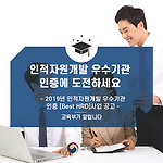 인적자원개발 우수기관 인증에 도전하세요 교육부(부총리 겸 교육부장관 유은혜)와 고용노동부(장관 이재갑)는 ⌜2019년 인적자원개발 우수기관 인증⌟(Best HRD) 사업을 3월 26일(화) 공동 공고하였습니다. ‘인적자원개발 우수기관 인증’ 사업은 능력 중심으로 인재를 채용하고 재직 중 근로자에게 지속적인 교육 기회를 제도입니다. ■ '2019년 인적자원개발 우수기관 인증' 사업 ① ‘2019년 인적자원개발 우수기관 인증’ 사업은 3월 26일부터 5월 13일까지② 공공 및 민간부분 기관의 신청을 받아 인적자원관리와 인적자원 개발의 역량 및 우수성을 심사합니다.③ 우수기관에게는 국가가 인증서(패)를 부여하고, 정기근로감독 3년간 면제, 우수기관 벤치마킹 연수 등의 혜택을 부여합니다.④ 또한, 희망기관에게는..