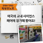 미국의 교내 사이언스 페어에참가해 봤어요! 미국의 초등학교 중에는 매해 사이언스 페어를 여는 곳이 있습니다. 과학 전람회와도 같은 이 행사는 원하는 학생 누구라도 참여할 수 있어 유치원 학령인 만 5세부터 기회를 누릴 수 있죠. 학교 교과 과정에도 간단한 실험 수업이 있지만 학생들은 평소 궁금했던 실험을 직접 해볼 수 있는 기회를 겨울방학 전후로 맘껏 즐깁니다. 물론 전시회 현장에서 수상작도 선정하는데요, 남보다 뛰어나고 기발한 제작물에 메달이 걸릴까요? 지금까지의 수상을 보자면 미국 교내 사이언스 페어의 의도는 남보다 뛰어난 학생을 고르는 작업만은 아닌 것 같습니다. ▲ 과학적 호기심을 풀어보고 결과물을 전시하는 사이언스 페어.가설과 결론이 맞지 않더라도 수준에 맞는 실험과 과정에 가치를 두고 시상한다..