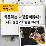 학문하는 과정을 배우다!- 대구경신고 학술발표대회 - 학년말이 다가오면 각 학교마다 한 해를 마무리하는 의미에서 1년 동안의 학문적 성과를 발표하고 확인하는 학술제가 열립니다. 요즘 고등학교 현장에서는 학문적 역량을 키워가는 교육활동으로서 학술논문, 소논문, 리서치, R&E(청소년소논문, Reaserch&Education) 등에 대한 관심이 증가하면서 학술제의 의미도 한층 중요해지고 있는 것 같아요. 얼마 전 대구 경신고등학교 소강당에서는 학술발표대회 예선대회를 통과한 학생들이 한 해 동안 열심히 준비하고 탐구한 연구논문을 발표하는 학술제가 열렸는데요. 본 기자도 본선대회 진출 팀에 선정되어 이 날 발표대회에 참가하였답니다. 3월초부터 거의 1년에 걸쳐 진행된 학술발표대회를 준비한 저의 경험을 바탕으로 ..
