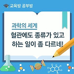 혈관에도 종류가 있고하는 일이 좀 다르네! 혈관은 심장에서 나오는 혈액을 온몸으로 운반하고, 온몸을 순환한 혈액을 다시 심장으로 되돌려 보내는 통로로 크게 동맥, 모세혈관, 정맥으로 나눌 수 있습니다. 심장에서 나온 산소와 영양분이 많이 포함되어 있는 혈액이 흐르는 혈관을 동맥이라고 합니다. 심장의 강한 압력을 견딜 수 있도록 두껍고 탄력 있는 근육층이 발달되어 있는 것이 특징입니다. 이러한 동맥과 정맥을 이어주는 역할을 하는 것이 바로 모세혈관입니다. 모세혈관은 하나의 세포층으로 이루어진 얇은 벽을 통해 산소와 이산화탄소, 영양분과 노폐물이 교환되는 장소이기도 합니다. 심장으로 들어오는 혈액이 흐르는 혈관은 정맥이라고 합니다. 온몸을 돌면서 이산화탄소와 노폐물을 얻은 혈액이 모세혈관을 빠져나와 심장으로..