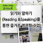 읽기와 말하기(Reading & Speaking)를 통한 즐거운 영문학 수업 아이들을 가르치는 선생님으로서 영어단문 독해 학습에 익숙한 아이들에게 영어원서를 활용한 재미있고 다양한 방식의 영어읽기 수업을 학생들에게 효과적으로 제공하기 위해 많은 고민을 했습니다. 우선 문제점을 파악하고, 그 이후 수업을 계획한 후, 이를 효과적으로 전달하기 위한 방법들을 만들어내고자 했죠. 우선 우리 영어 교실의 단점을 체크해 보면 다음과 같습니다. 1. 학생수가 많다. 2. 영어원서수업을 경험해 본적이 없다. 3. 영어에 대한 두려움이 크다. 4. 영어원서는 영어수준이 높은 학생들이 도전하는 것이다. 이를 바탕으로 아이들이 갖고 있는 영어에 대한 여러가지 부정적인 생각과 걱정을 덜어주기 위해 우리에게 친숙한 영문학을 수..