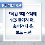「취업 9대 스펙에 NCS 한가지 더... 혹 떼려다 혹」보도 관련 ■ 보도 개요 ㅇ 보도매체 및 일시 : 2015.4.6.(월)/국민일보 ㅇ 보도 주요 내용 - 과도한 스펙쌓기로 인한 사회적 낭비를 줄이고자 공공기관 채용 과정에 국가직무능력표 준(NCS) 을 도입함 - 하지만 취업을 준비하는 학생들은 준비 방법을 몰라 혼란을 겪고 있으며, - NCS 과정을 이용하여 취업학원들이 고액 수업을 개설됨 ■ 설명 내용 ㅇ NCS를 도입한 취지는 직무에 필요한 능력만으로 직원을 채용하여 - 직무와 무관한 스펙쌓기로 발생하는 사회적 낭비를 줄이기 위한 것임 ㅇ 한편, 정부에서는 수험생의 혼란을 막기 위해 다양한 지원방안을 마련하였음 - 서류·면접 등 대비하기 용이한 부분에서 우선 도입하고, - 필기시험은 1년 이..